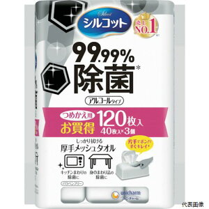 ユニ・チャーム 40915 シルコット99.99除菌ウェットティッシュ 詰替40枚X3個入