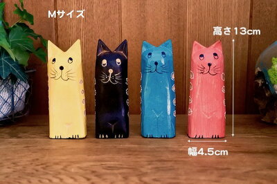 ◆全商品P10倍5/16-1:59迄◆置物 置き物 オブジェ オーナメント 飾り インテリア小物 アジアン バリ 雑貨 ♪カラフルスリムネコM(イエロー・ピンク・ブルーグリーン・ブラウン)♪ おしゃれ エスニック リゾート アジアンインテリア インテリア雑貨 デザイン雑貨 バリ風