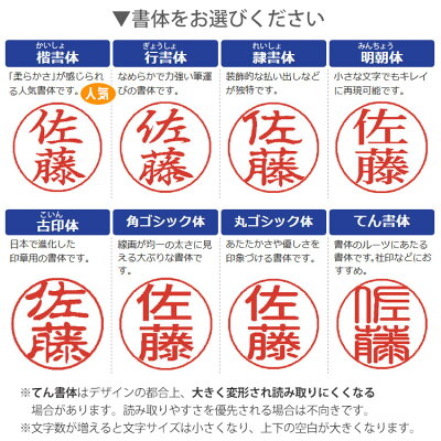 印面の書体 8種類より選択可能 ◆「てん書体」は書体のデザインの都合上、かなり変形され読み取りにくくなる場合があります。