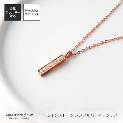 lana ocean jewel ネックレス ペンダント サージカルステンレス316L製 バー ピンクゴールド ラインストーン パヴェ キラキラ シンプル 金属アレルギー対応 レディース 送料無料